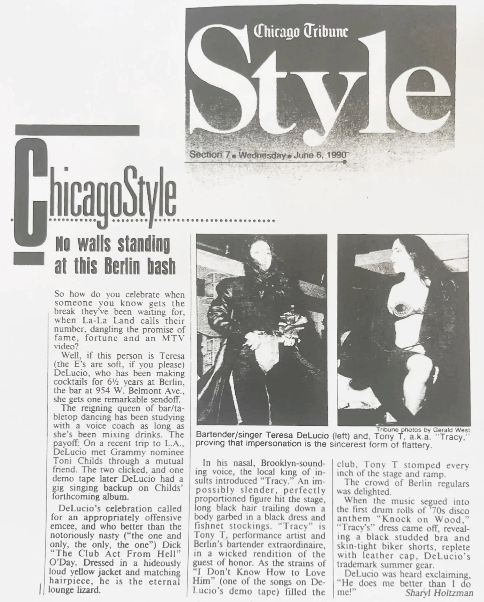 Teresa’s story begins in Chicago, where she made her mark in the iconic club scene of the 1980s. As a bartender and performer at legendary venues like Smart Bar and Berlin, she became known for her magnetic presence and fearless self-expression. At her farewell celebration in 1990, the Chicago Tribune crowned her the “Reigning Queen of Bar Tabletop Dancing.”